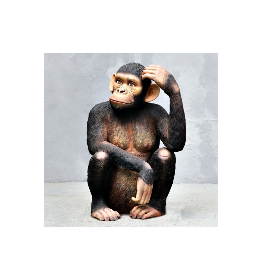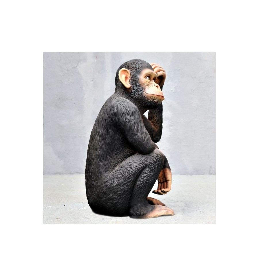NEW REPLICA OF A CHIMPANZEE LIFE-SIZE, FIGURE OF A PRIMATE SITTING, DESCNASANDO, MONKEY CHIMPANZEE OF FIBER AND RESIN. STATUE OF A MONKEY TO SCALE REAL