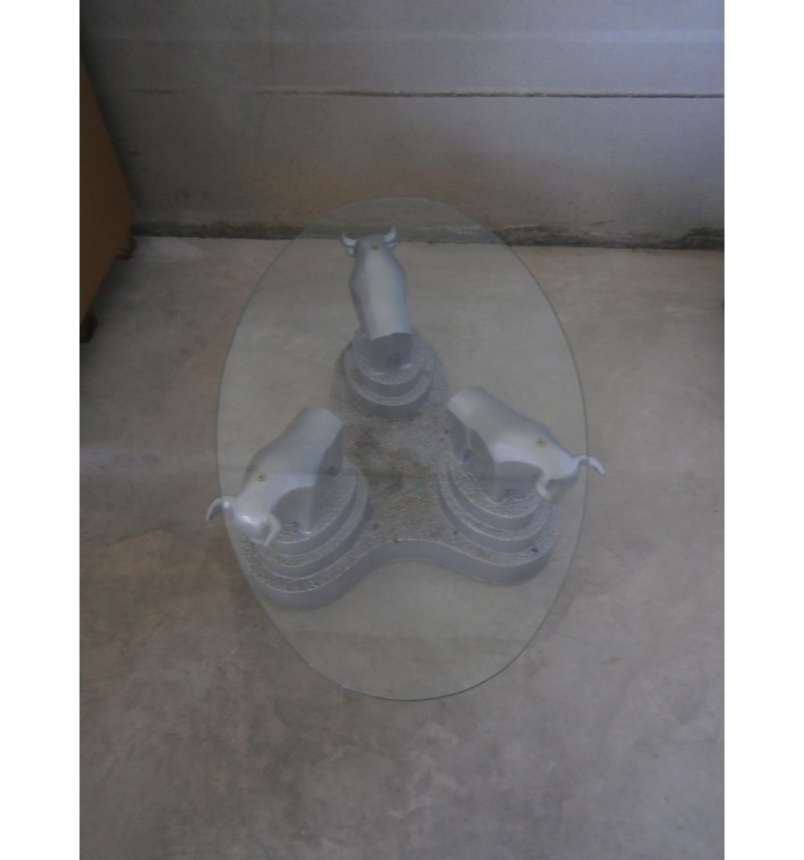 REPLICA OF A ORIGINALMESA GLASS OF 100 CMS. TABLES MADE WITH FIGURES OF BULLS, TABLE BULLS