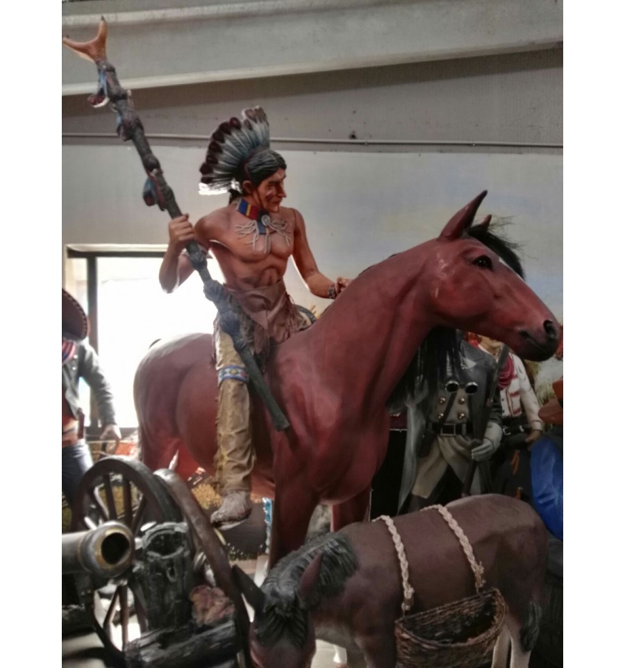 SPECTACULAR SCALED-DOWN REPLICA OF A REAL HORSE WITH A RIDER INDIAN WITHOUT SADDLE, FIGURE OF THE OLD AMERICAN WEST, INDIAN, FOR A HORSE OF FIBER FOR OUTSIDE