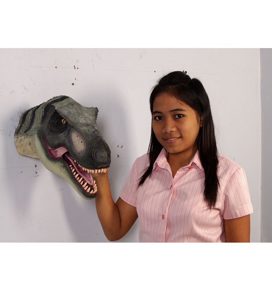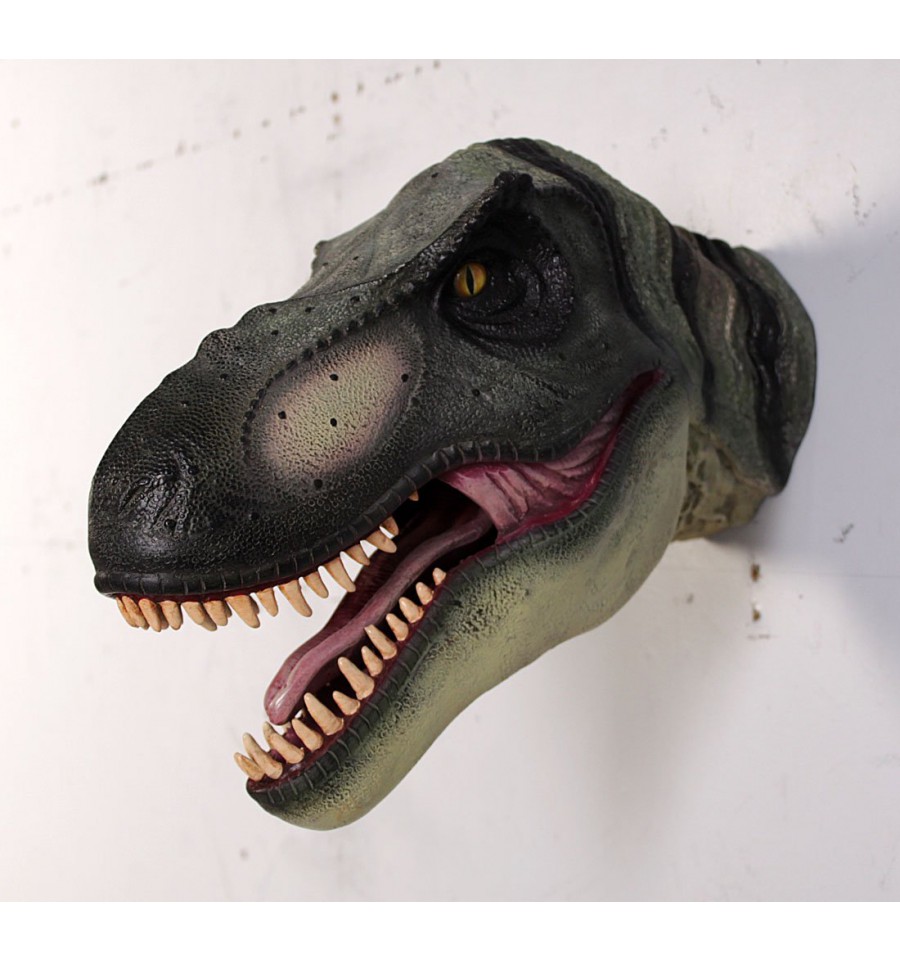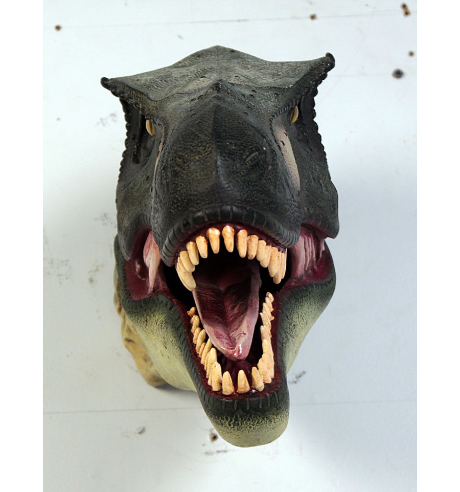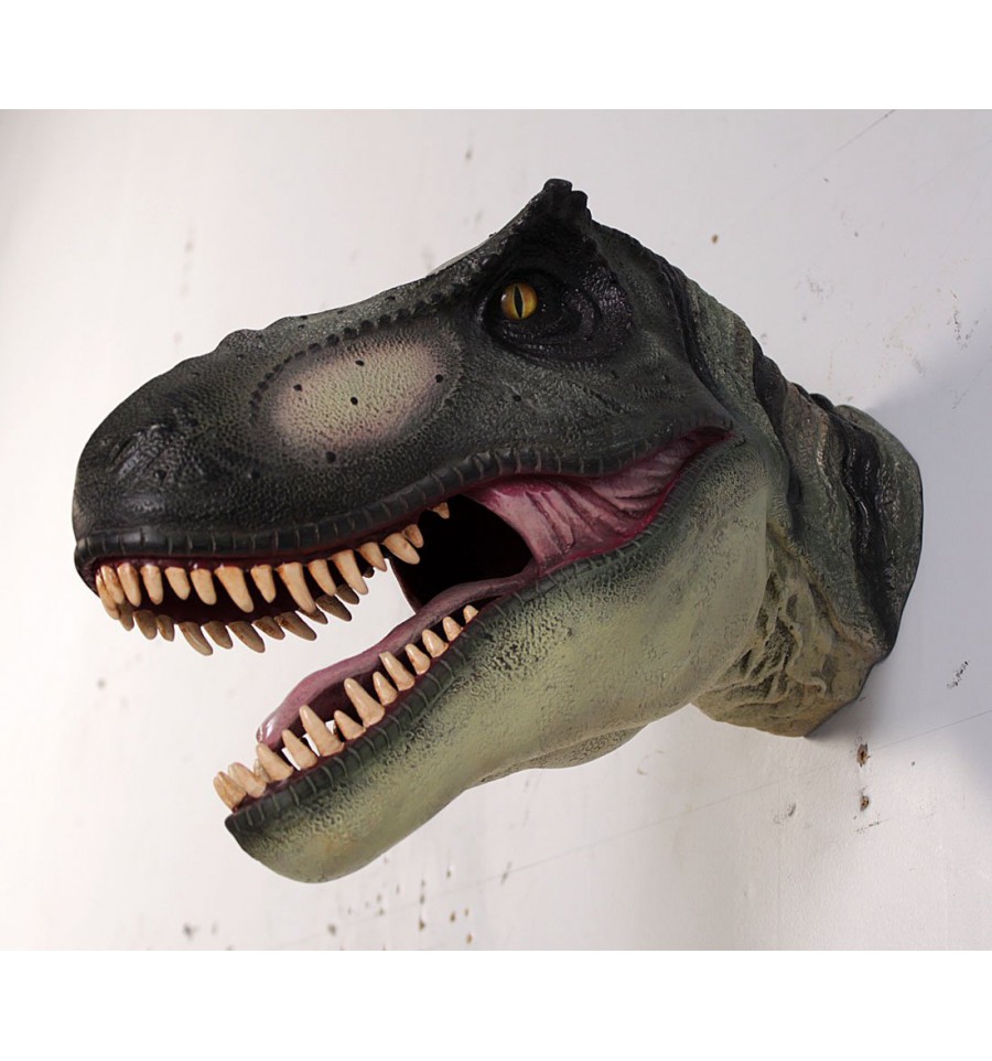 IMPRESSIVE HEAD OF T-REX, MADE FROM FIBER AND RESIN WITH A FINISH VERY REAL AND VERY APT FOR EXTERIOR SPACES, WITH IT YOU CAN DECORATE YOUR WALL IN THE LIVING ROOM VERY ORIGINALLY