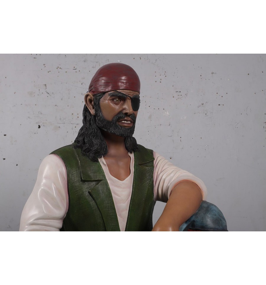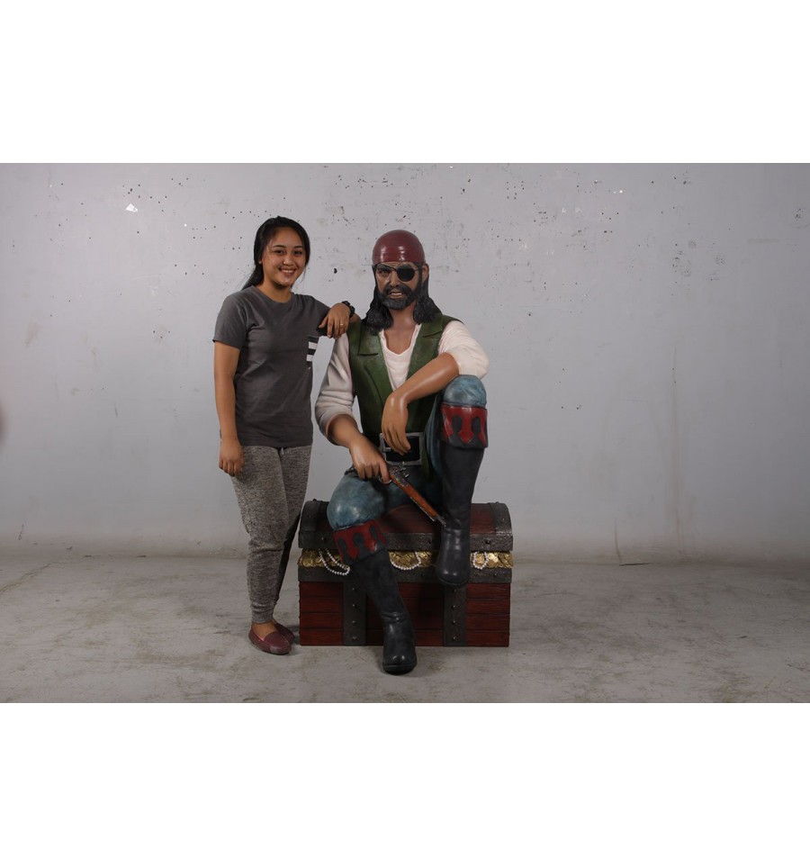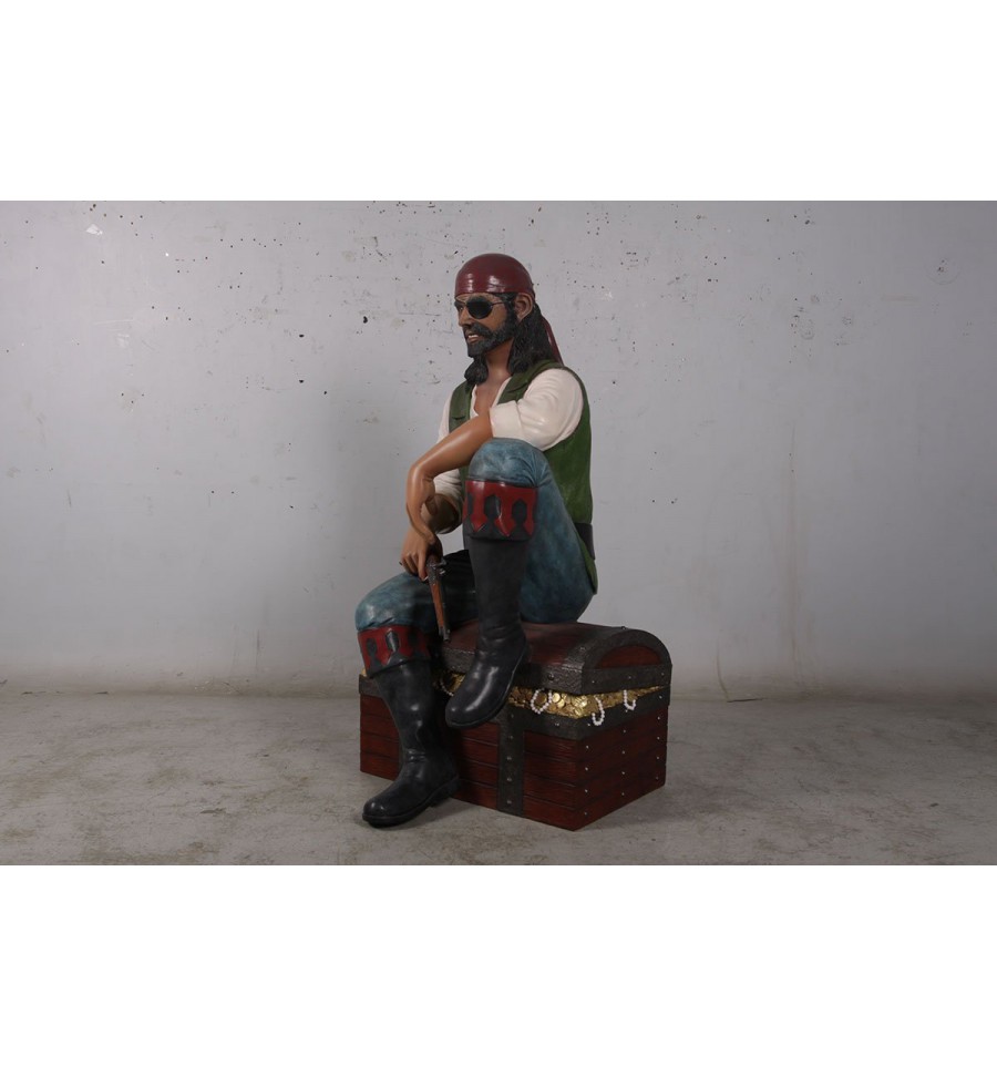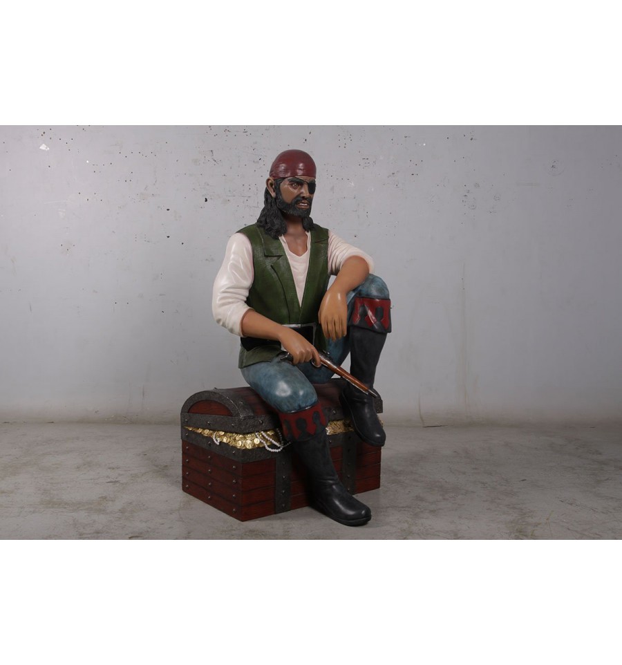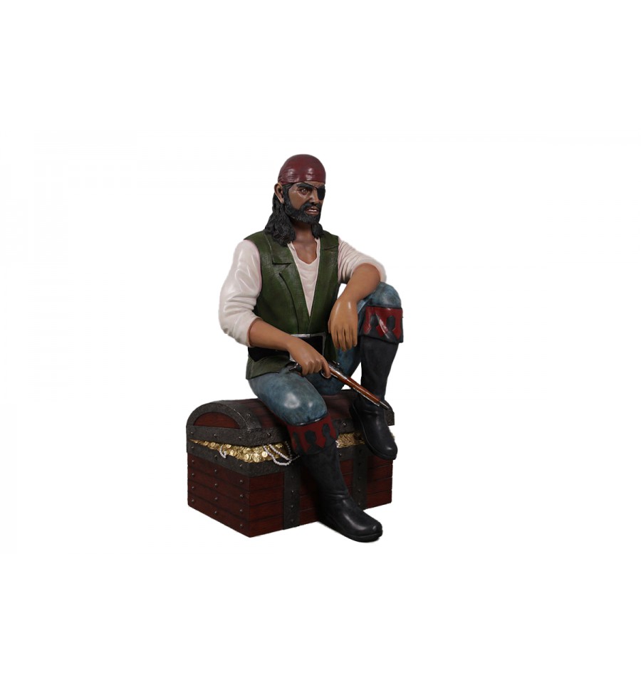 PIRATE IN A SITTING POSITION, A PIECE OF A VERY GOOD FINISH AND MANUFACTURED WITH THE BEST PRODUCTS TO MAKE IT RESISTANT, IT IS SUITABLE FOR OUTDOOR SPACES, IT WOULD BE REALLY GOOD IN YOUR GARDEN OR IN YOUR SPACE