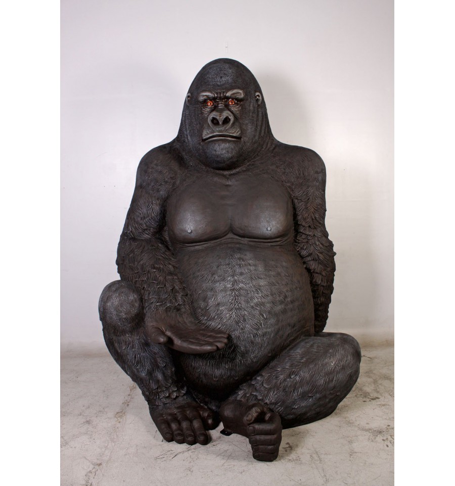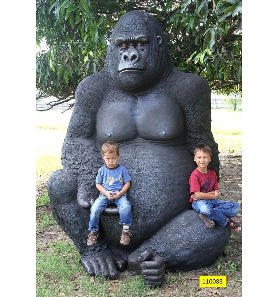 Replica de un gran gorila lomo plateado, con sus manos hace de asiento. Espectacular para decorar eventos de animales salvajes y para el disfrute d elos nilos..
