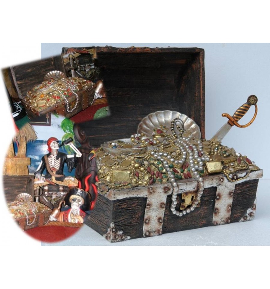 TREASURE CHEST. REPRODUCTION OF A PIRATE COFFEE TO DECORATE YOUR SHOWCASE OR YOUR WINE CELLAR.