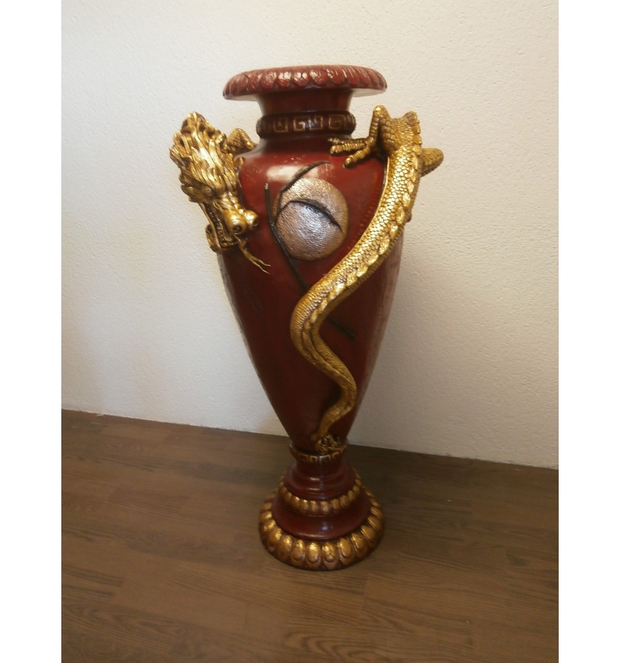 HERMOSO JARRON DECORATIVO,MUY PARECIDO A LOS DE LA DINASTIA MING, DEL ANTIGUO ORIENTE, IDEAL PARA DECORAR GRANDES ESPACION, JARDINES..ACABADO PORCELANA BRILLANTE ROJO ORO