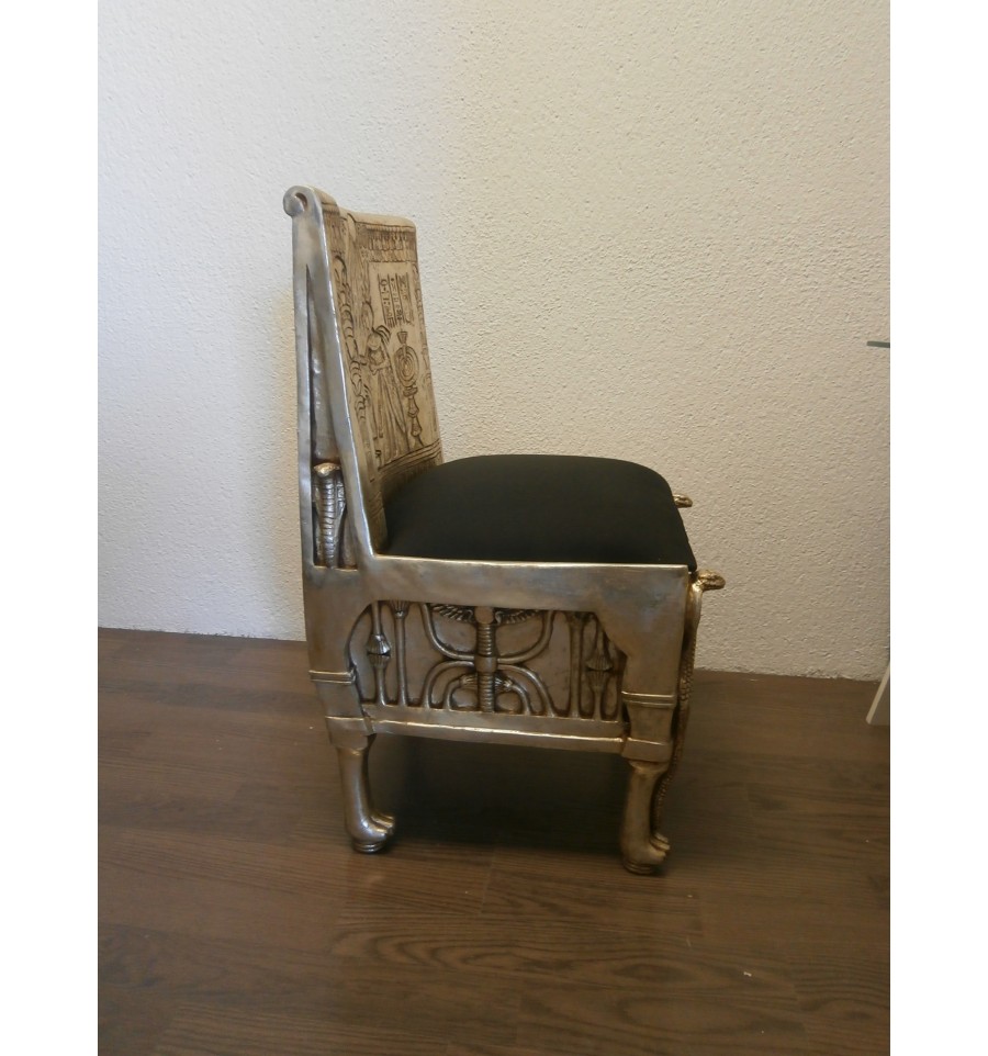 INCREIBLE SILLON SILLA EGIPCIO, DECORADO CON JEROGLIFICOS Y ACABADOS EN PALTA Y FUNDA ACOLCHADA