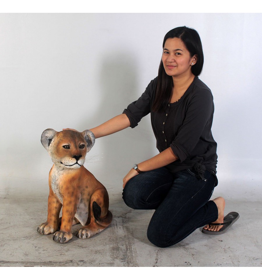 CACHORRO LEON DE FIBRA PARA EXTERIOR. REPLICA LEON DECORATIVA, LEON PEQUEÑO SENTADO, ESTAUTA DE UN CACHORRO DE LEON, ESTATUA DE UNA CRIA DE LEON, REPRODUCCIONES DE ANIMALES SELVATICAS