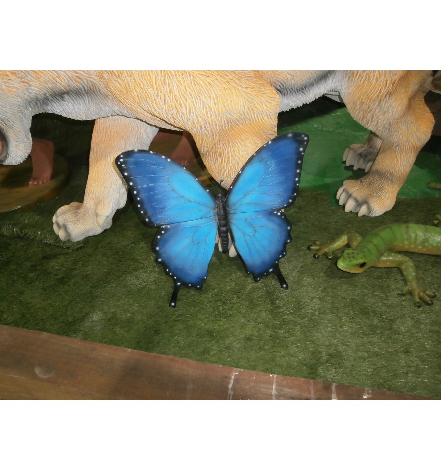Espectacular mariposa decorativa azul, vendida por Macocaya. Ideal para decorar espacios naturales, escaparates o ambientes con temática floral y primaveral.