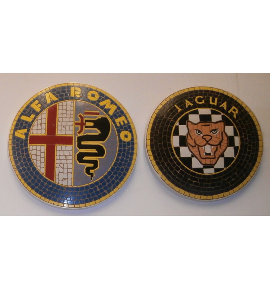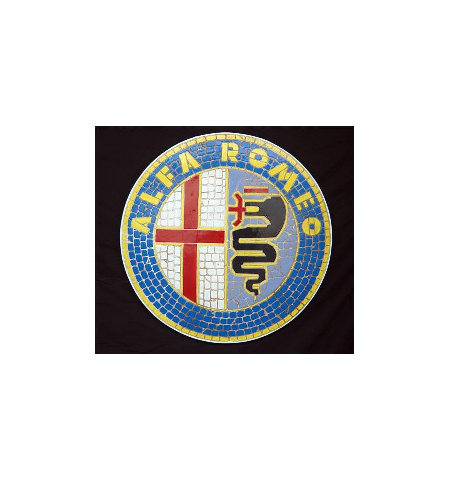 Mosaico del logo de la marca de automóviles Alfa Romeo, este mosaico esta hecho de fibra y resina, es una pieza dura y resistente, hecha para colgar en cualquier superficie sin problema, si eres un enamorado de esta marca no lo dudes, es la pieza que te falta.