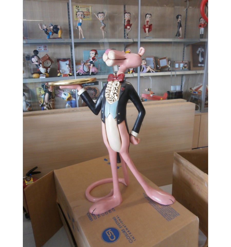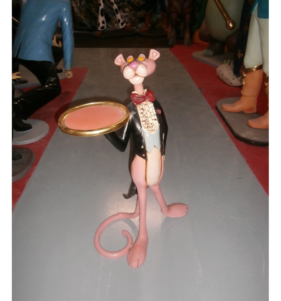 ESTATUA DE LA PANTERA ROSA SUJETANDO UNA BANDEJA, FIGURA PANTERA ROSA CAMARERO,REPRODUCCION PANTERA ROSA, COMPRAR FIGURAS PANTERA ROSA COLECCIONABLES, REPLICAS DE PANTERA ROSA