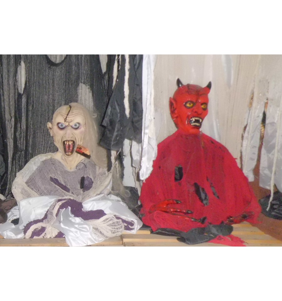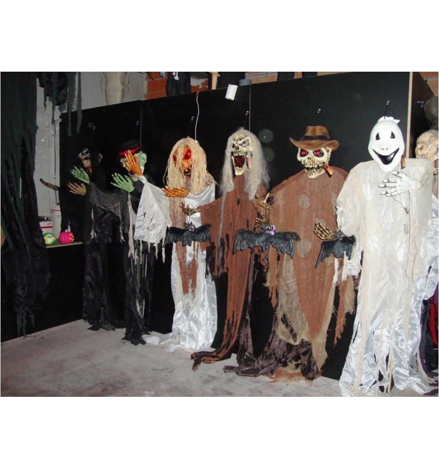 75287-75307-75337-75347-93037-93117 MODELOS SURTIDOS. MONSTRUOS COLGANTES SURTIDOS CON LUZ EN LOS OJOS, REPLICAS DE DIFERENTES MONSTRUOS, DEMONIOS, BRUJAS, VAQUEROS ZOMBIES, COWBOY MUERTO VIVIENTE, TODAS CON TELA PARA COLGAR EN LA PARED.
