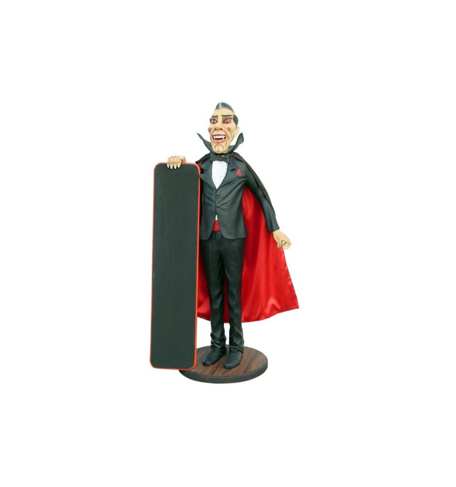 DEMONIO CON MENU. ESTATUA TERROR CONDE DRACULA CON CARTEL