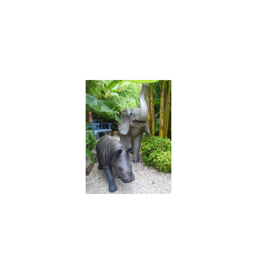 FIGURA DE ANIMALES DE LA SELVA, REPRODUCCION DE UNA CRIA DE RINOCERONTE, ESTATUA DE UN RINOCERONTE CRIA