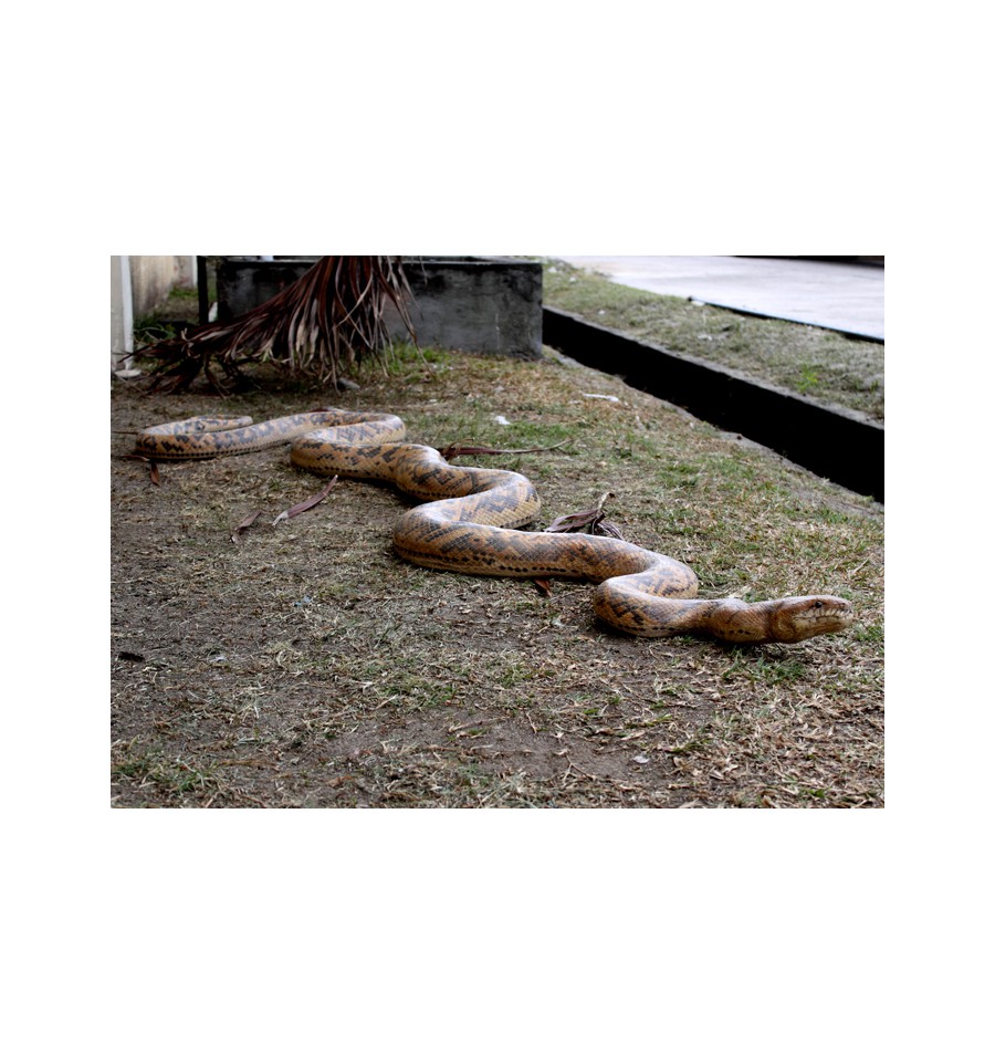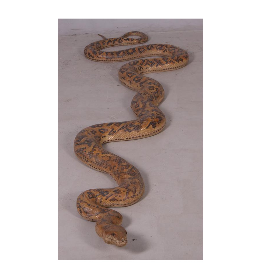 Figura decorativa de una serpiente piton de gran tamaño, vendida por Macocaya. Ideal para decoración temática de junglas, zoológicos o parques de aventura.