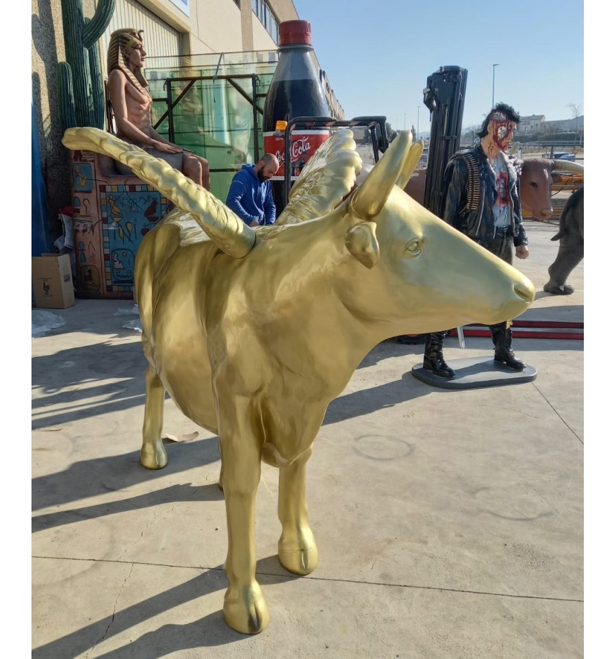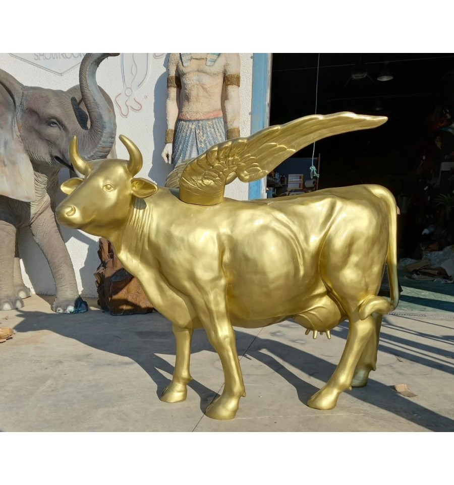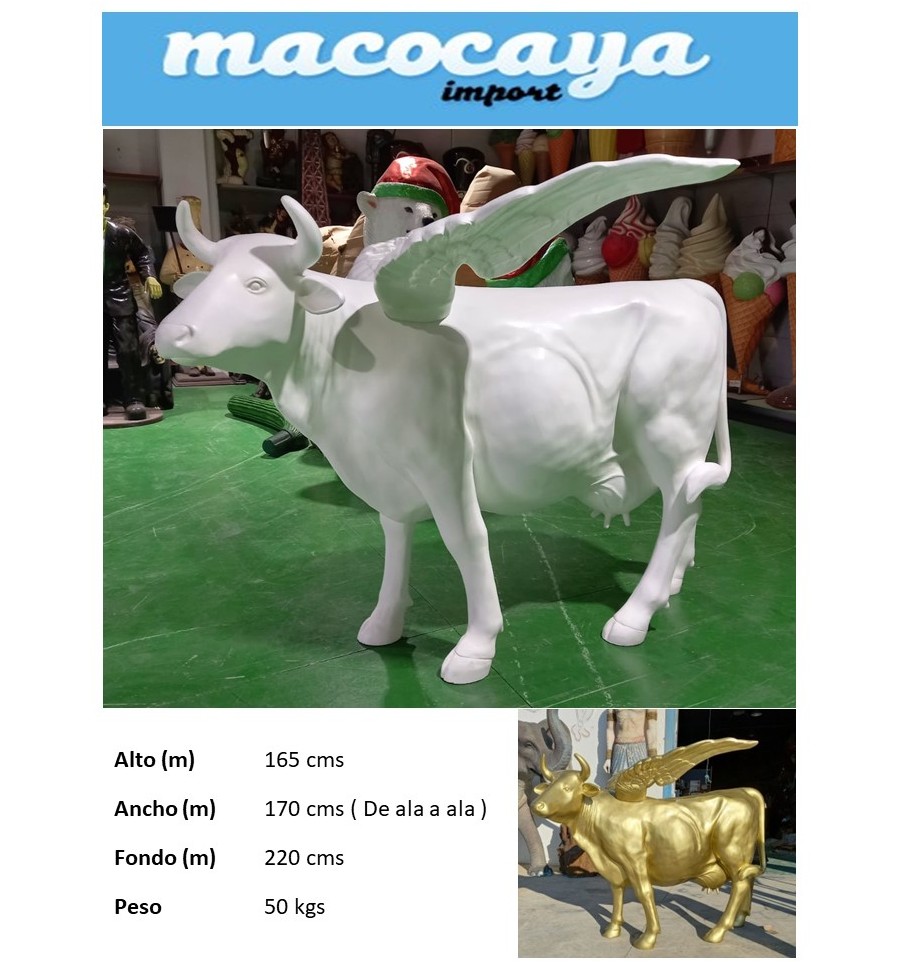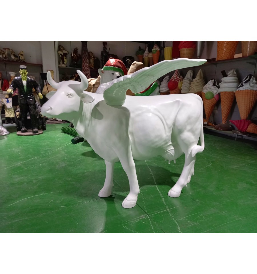 Replica de una vaca a tamaño real dorada o blanca con alas. Vaca para decorar tu evento. vaca gigante de fibra lista para entregar en 24-48 horas
