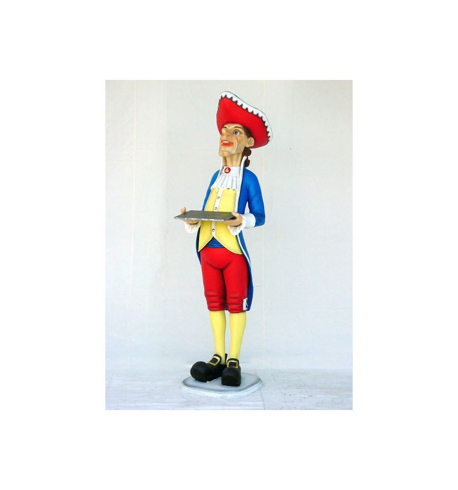 FIGURA MAYORDOMO ELEGANTE, MANIQUI MAYORDOMO, ESTATUA MAYORDOMO EN FIBRA, ESTATUAS PERSONAJESCON BANDEJA, FIGURAS PERSONAJES CON BANDEJA, REPLICAS DE CAMAREROS PARA EL EXTERIOR